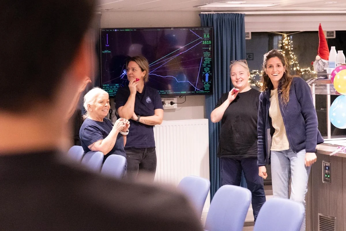 I dag feiret vi bursdagen til antropologen vår, Marta Gentilucci. Til vanlig er det hun som observerer oss – notatboken alltid innen rekkevidde, på jakt etter de små detaljene som sier noe om livet i et flytende, midlertidig samfunn midt i Polhavet. Men i dag var det hennes tur til å bli observert og feiret av resten av gjengen.