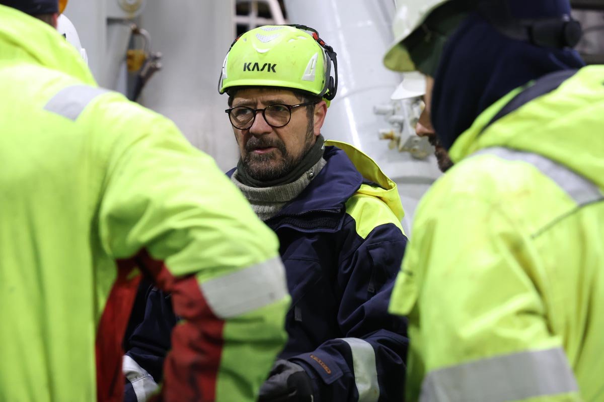 Per Trinhammer (Aalborg universitet) gir mannskapet en siste briefing før streameren senkes i vannet.