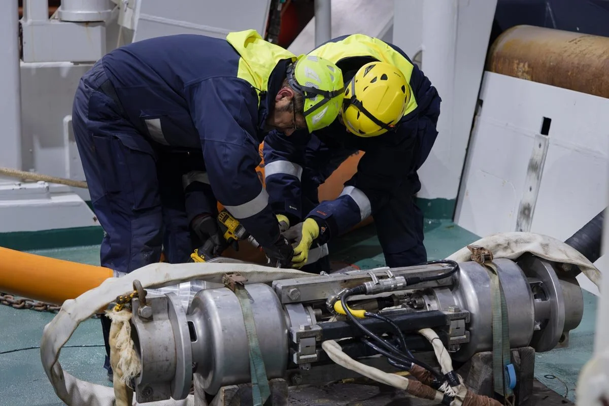 Siste justeringer av luftkanonen før den senkes i sjøen.