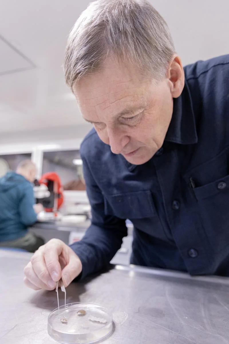 Vi har tidligere fortalt om Thomas Dahlgren (NORCE) og arbeidet hans med eDNA for å sammenligne faunaen i ulike dyphavsområder. For å gjøre dette bruker han sedimentkjerner hentet opp med multicoreren, samt vannprøver samlet inn med en CTD-rosett.