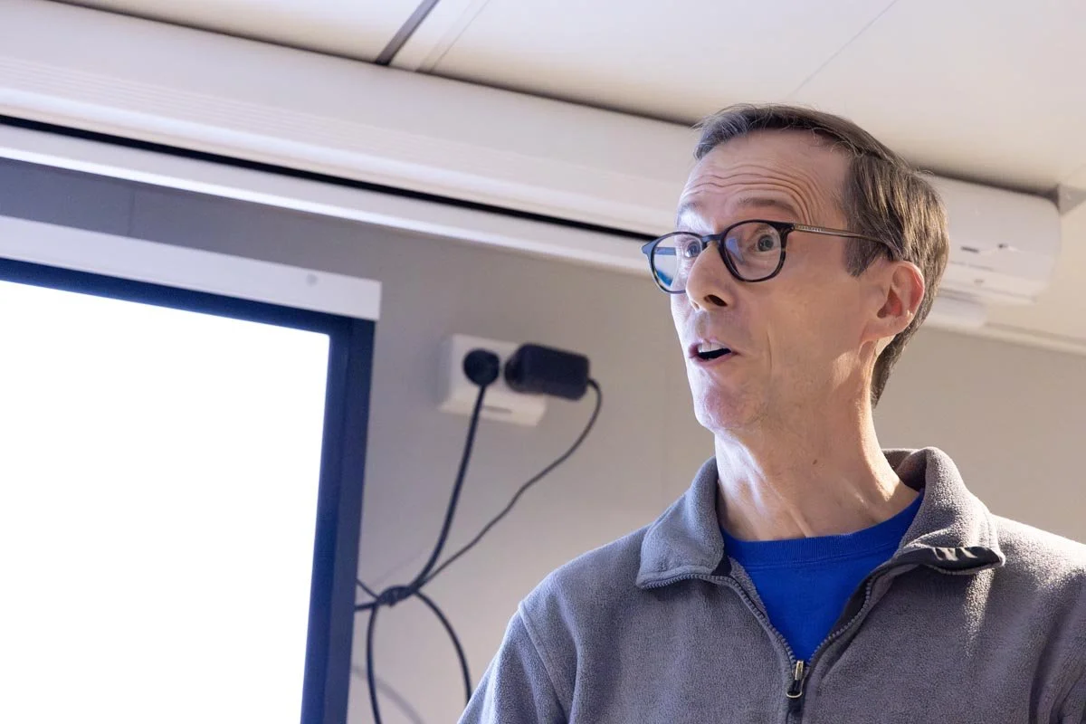Det er sikkert holdt mange foredrag om Østgrønlandsryggen opp gjennom årene – men hvor mange av dem er blitt fremført på selve Østgrønlandsryggen? Det var nettopp dette vitenskapsteamet fikk oppleve i går kveld. Professor Thomas Funck (GEUS) ga en innsiktsfull gjennomgang av hva vi vet om denne undersjøiske strukturen, og – kanskje enda viktigere – hva vi fortsatt ikke vet.