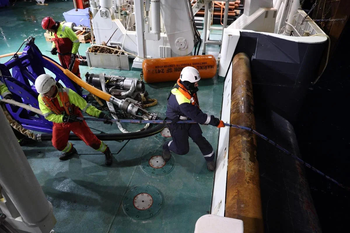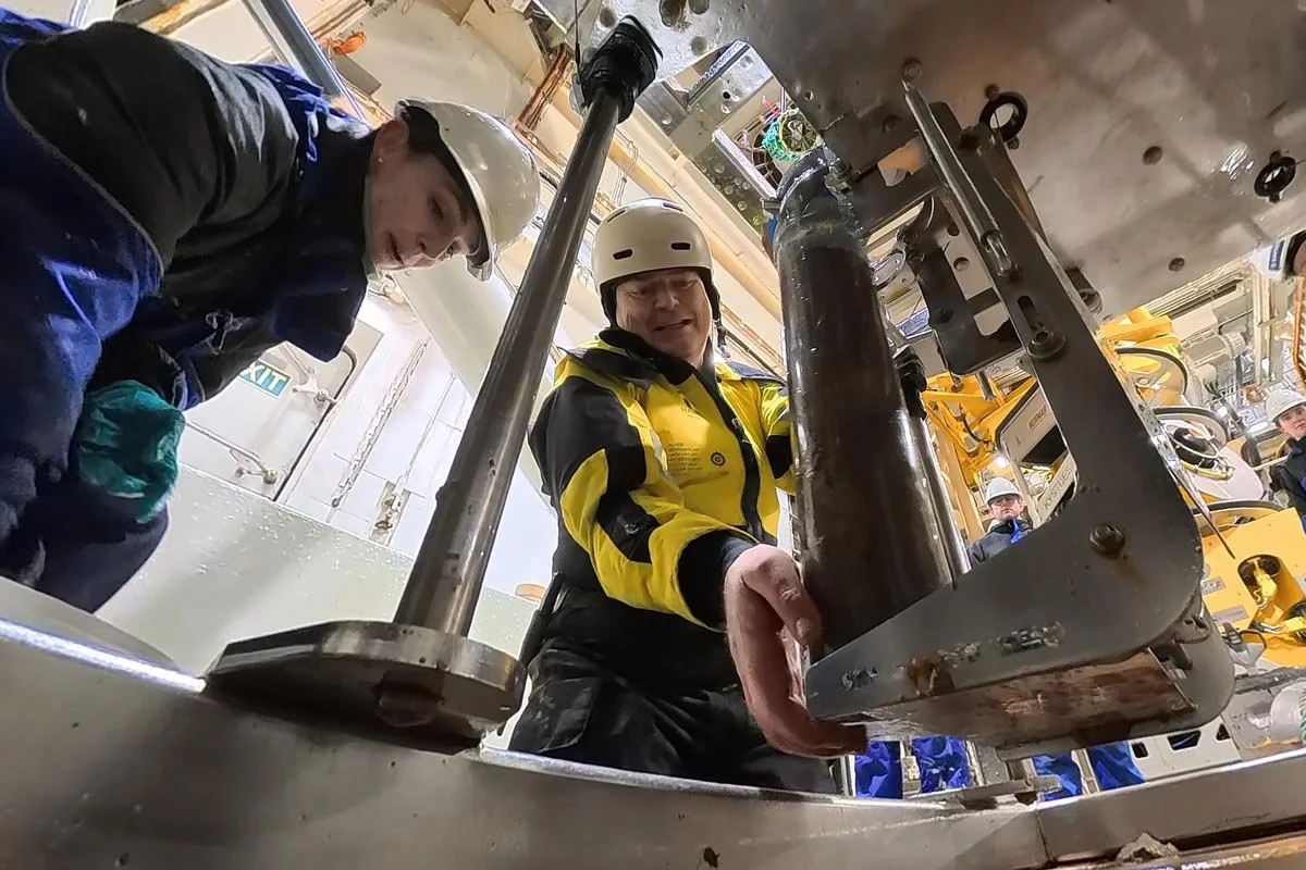 Etter at seismikklinjen var fullført, tok teamet sedimentprøver på samme sted med både multicorer og gravity corer. Begge operasjonene var vellykkede. Dette er bemerkelsesverdig, siden det er langt fra gitt at en multicorer som sendes ned til havbunnen, kommer opp igjen med fulle rør – det samme gjelder en gravity corer. Listen over ting som kan gå galt er lang: Instrumentene kan treffe stein, trenge for dypt ned i sedimentene eller lande på skrå. Derfor er teamet svært fornøyd med resultatene så langt.