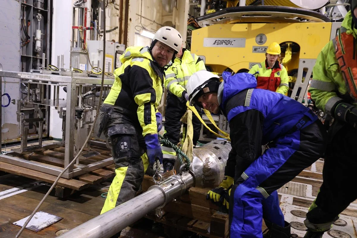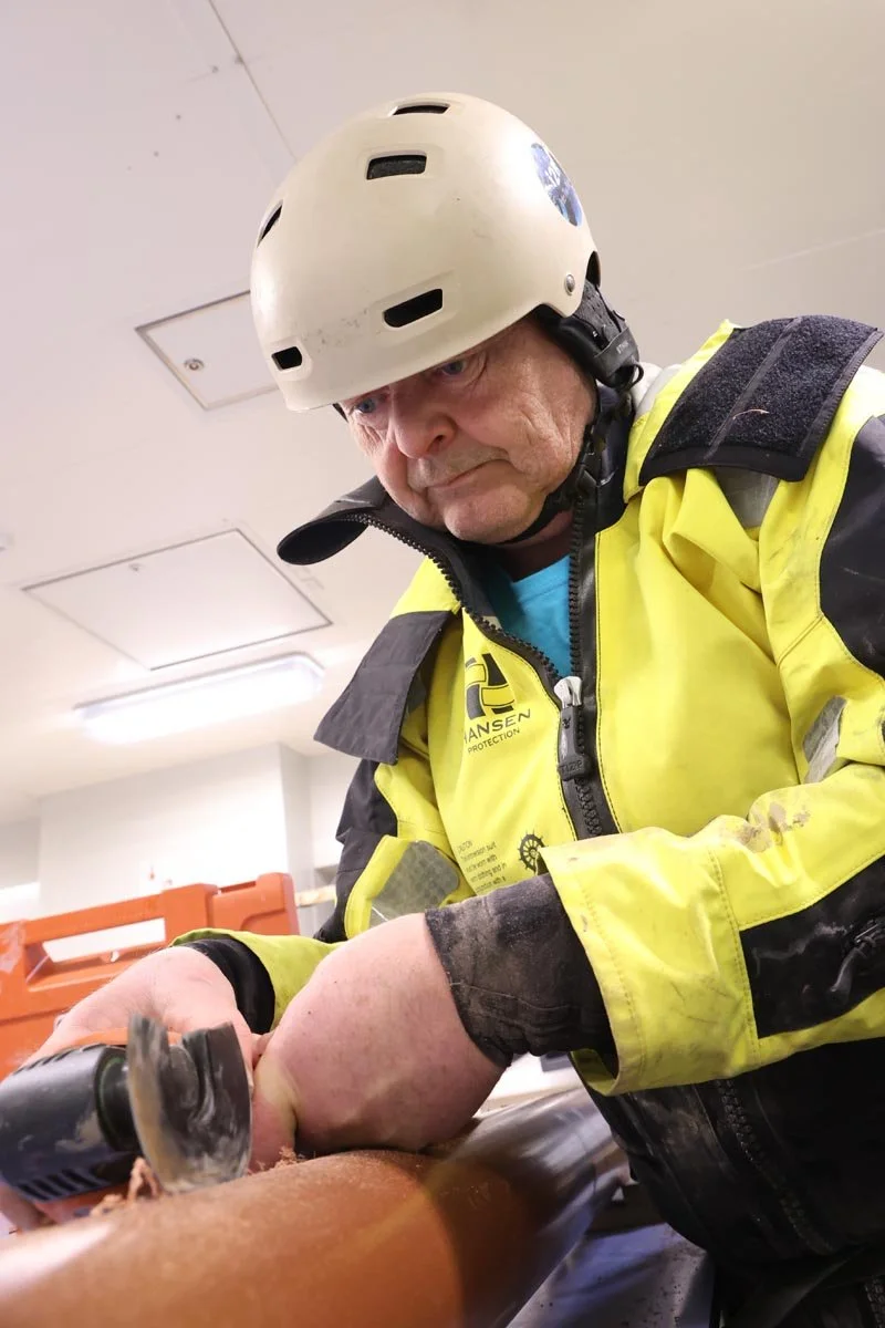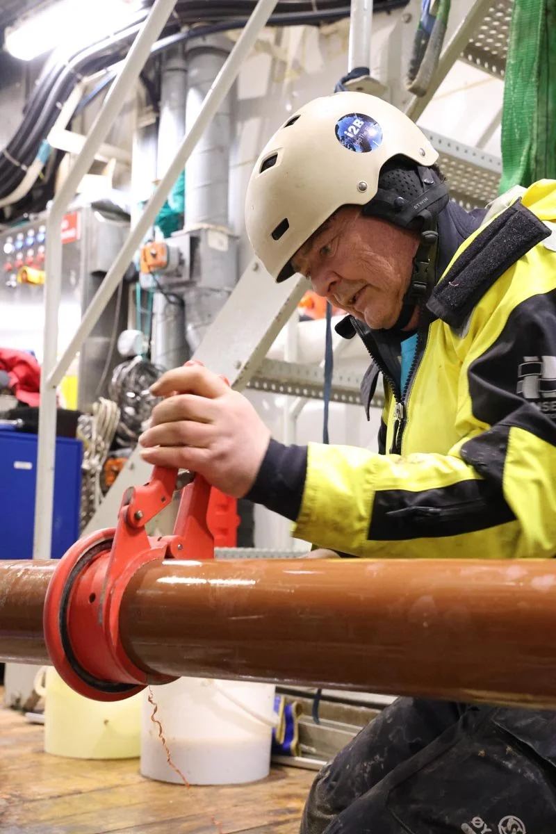 I gårsdagens rapport lovet vi å fortelle mer om gravity-kjernen vi hentet opp fra havbunnen. Å få den om bord er en stor operasjon i seg selv, men det er bare begynnelsen. Her får du prosessen, trinn for trinn – i bilder.
